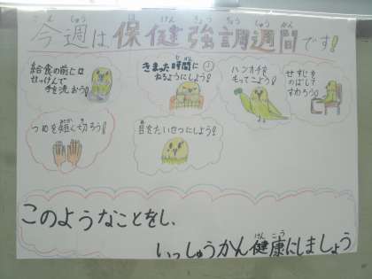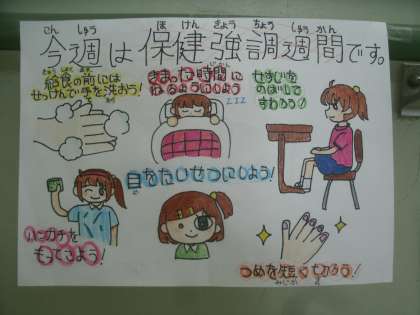 健康委員会の子ども達が描いた「保健強調週間ポスター」の出来栄えが素晴らしいので紹介します。