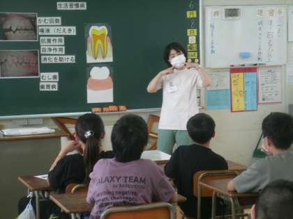 大阪市教育委員会事務局から歯科衛生士さんに来ていただき「歯と口の健康教室」を実施しました。