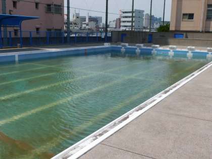 6月30日からのプール水泳に向け、今週から管理作業員さんが少しずつ清掃しています。