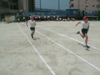 今日からスポーツテストが始まりました。運動場で50m走とソフトボール投げを実施しました。