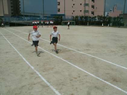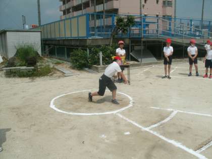 3年生も運動場で50m走とソフトボール投げに取り組みました。
