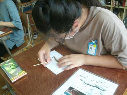 理科学習の様子です。今日はにぼし(カタクチイワシ)の解剖に取り組みました。