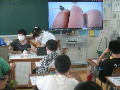 理科学習の様子です。今日は煮干しの解剖に取り組みました。
