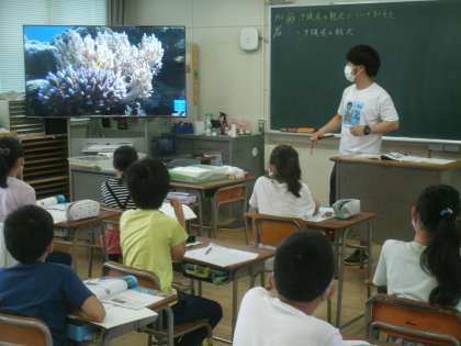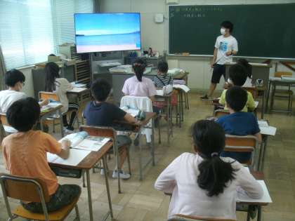 社会科学習の様子です。今日は沖縄県について学習です。5年生は「日本の国土」について学習します。日本各地の特徴的な都道府県や町をピックアップしていきます。