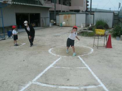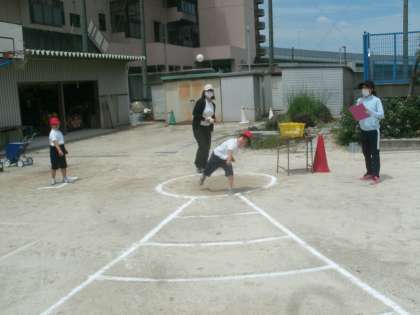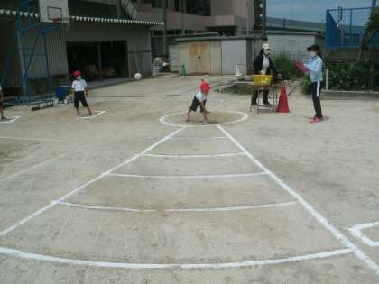 運動場で「50m走」と「ソフトボール投げ」に取り組みました。