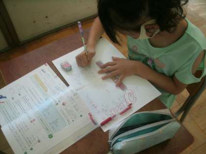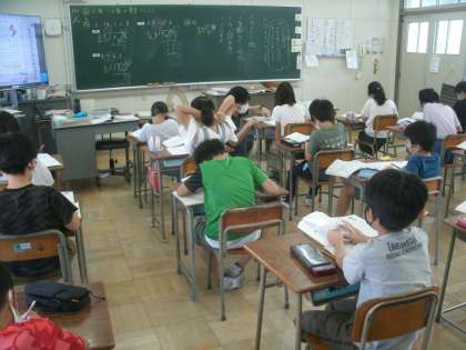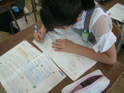 算数科学習の様子です。今日の学習課題は「小数÷小数の筆算をしよう」です。