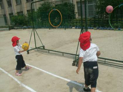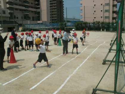 体育科学習の様子です。「体つくりの運動遊び」に取り組んでいます。今日はボールを操作する運動遊びです。