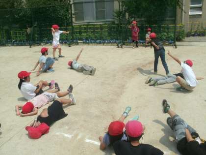 今日、15分休みに2年生がみんなで「だるまさんがころんだ」をして遊びました。本当に転ばないといけないという過酷なルールでした。途中で「だるまさんがトイレに行った」なんて言う子がいました。2年生の子ども達がそれに合わせていっせいにしゃがんだのを見て笑ってしまいました。