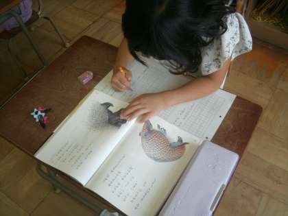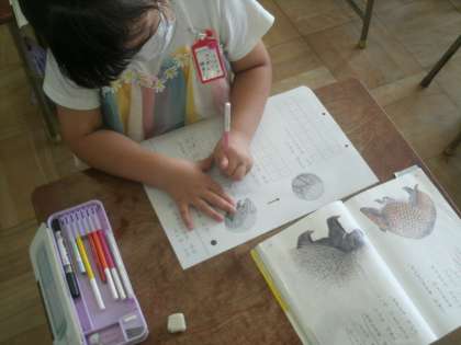 国語科学習の様子です。ヤマアラシに続いて、今日はアルマジロの身の守り方を読み取っていきます。