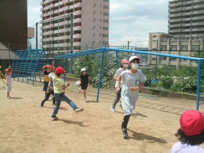 第2運動場では6年生の女の子が低学年と一緒に遊んでくれていました。ありがとう、6年生。