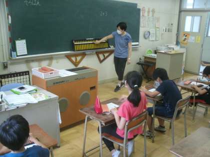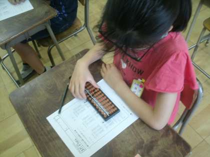 算数科学習の様子です。習熟度別少人数学習で進めています。今日は「そろばん」の学習です。