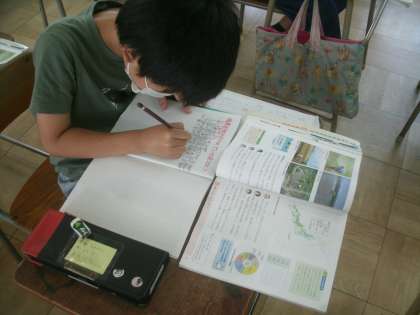 社会科学習の様子です。日本の「米作り」について学んでいます。
