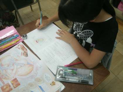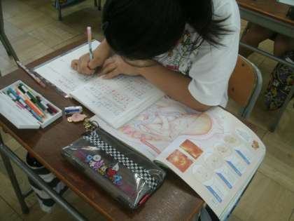 理科学習の様子です。「ヒトの誕生」で学習してきたことを、各自でノートに工夫してまとめています。学習ノートは学びの基本です。ノート作りは自学の第一歩です。