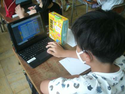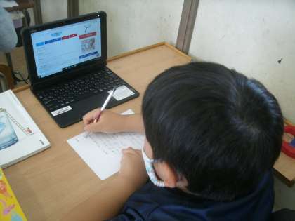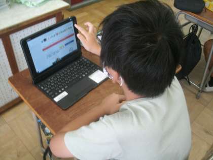 国語科学習の様子です。国語辞典とタブレット端末を上手く使い分けて、「故事成語」「ことわざ」を調べています。