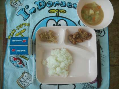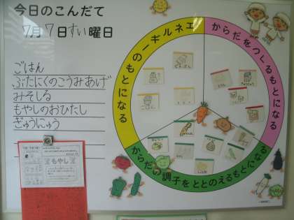健康委員会の子ども達がいつも配膳室の掲示板に今日の献立を書いてくれています。