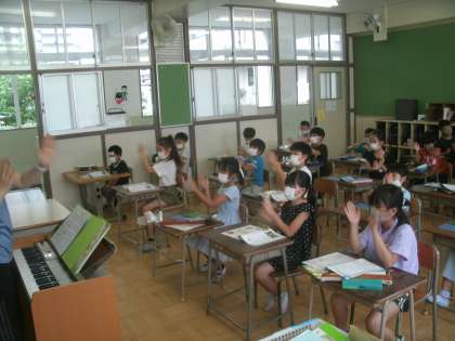 学習の様子 3年生 公開日 2021/07/09 更新日 2021/07/09 お知らせ 音楽科学習の様子です。「茶つみ」を歌っています。2人で向かい合って手を合わせる遊びの動作もつけて歌っていたのがとても可愛らしかったです。残念なのは、新型コロナウイルス感染症感染予防対策でお互いに向かい合わず、手も合わさずということでした。 いいね(0)