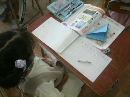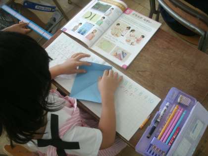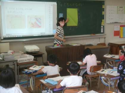 算数科学習の様子です。今日の学習は「どちらがながい」です。長さの比べ方を考えていきます。