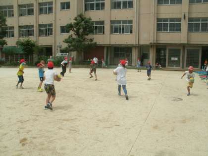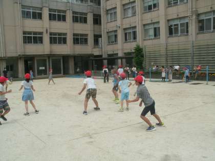 ドッジボールをして楽しむ子ども達です。今日はボールが4つもある油断も隙も無いドッジボールをしていました。