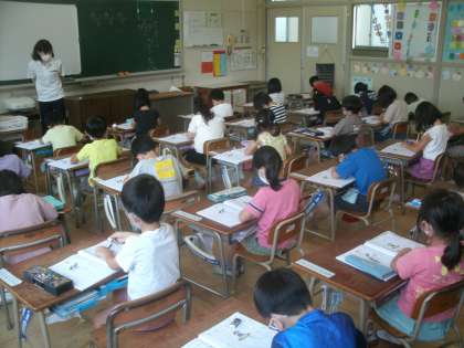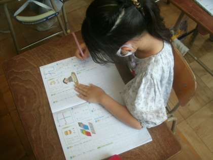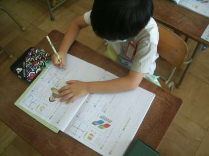 国語科学習の様子です。今日の漢字は「九」です。2画の漢字ですが、なかなかバランスの取りにくい漢字です。