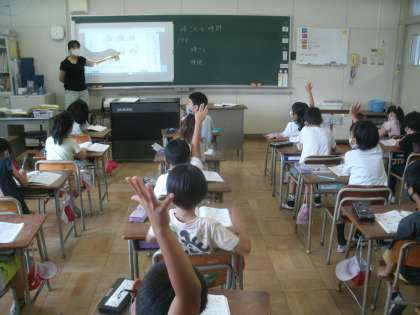 算数科学習の様子です。今日は「時刻」と「時間」の違いについて考えます。