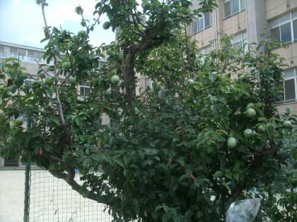 今年はたくさんの花梨(カリン)の実が付きました。今は緑色ですが秋には黄色くなりますよ。