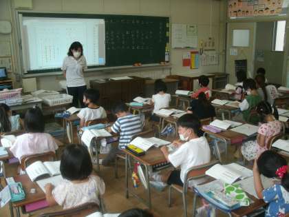 国語科学習の様子です。今日は「かぞえうた」です。ワークシートを使って学習に取り組んでいます。
