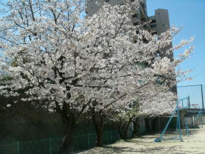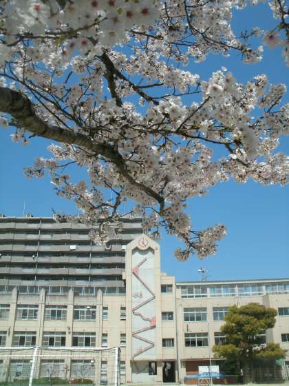 うららかな春の陽気の中、校庭の桜が咲き誇っています。新1年生の入学、新2年生〜新6年生の進級を心待ちにしているかのようです。