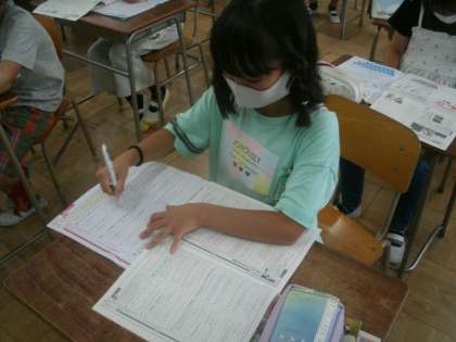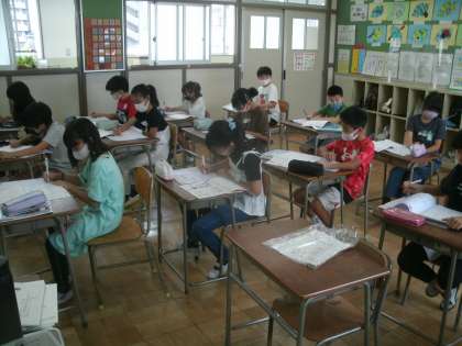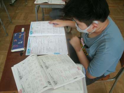 夏休みの課題の答え合わせをしています。間違った問題は必ずやり直しておきましょうね。