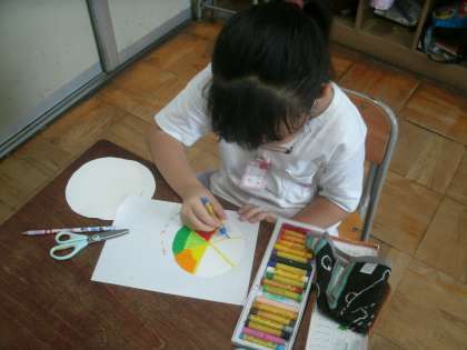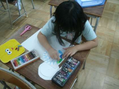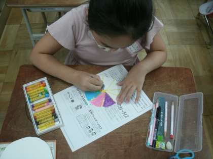 図画工作科学習の様子です。一人一人が「花火」を描いています。