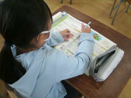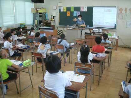 音楽科学習の様子です。今日は『2拍子にのってえんそうしましょう。「ゆかいな木きん」』の学習です。