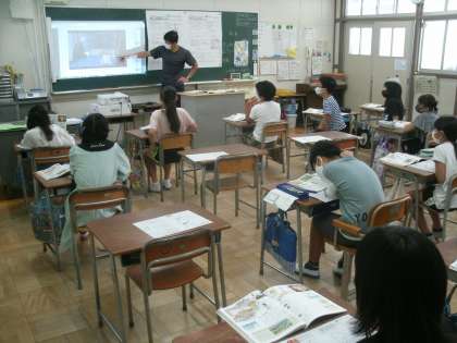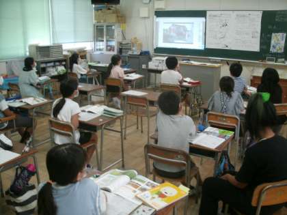 社会科学習の様子です。「日本の米作り」について学習しています。映像を視聴しています。