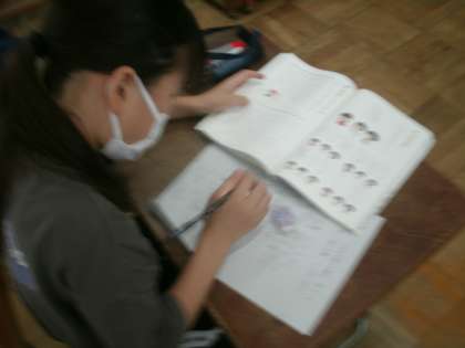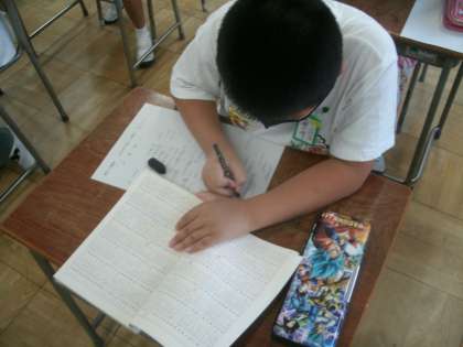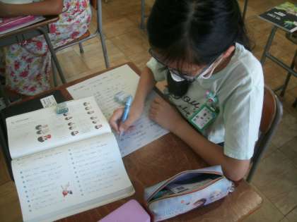 漢字学習の様子です。漢字プリントを使って確かめています。