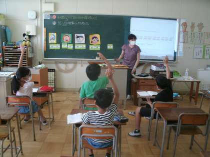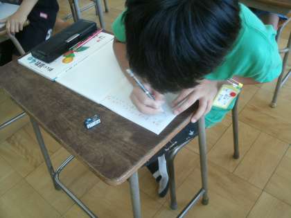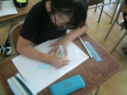 算数科学習の様子です。習熟度別少人数学習で進めています。今日は「わる数が2けたであまりのあるわり算を考えよう」です。