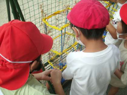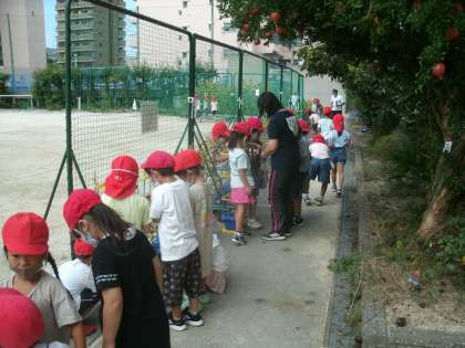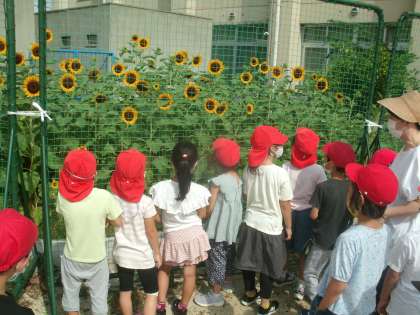 生活科学習の様子です。アサガオの観察をしています。種もたくさん採れたようです。アサガオを観察した後はヒマワリも観察しました。