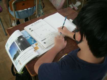 理科学習の様子です。「半月と満月の月の動き」について学習しています。