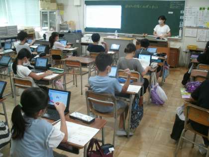 学習の様子 5年1組 公開日 2021/09/01 更新日 2021/09/01 お知らせ 音楽科学習の様子です。今日の学習課題は「日本の音階を使ってせん律を作ろう」です。一人一台のタブレット端末を使ってせん律を作ります。 いいね(0)