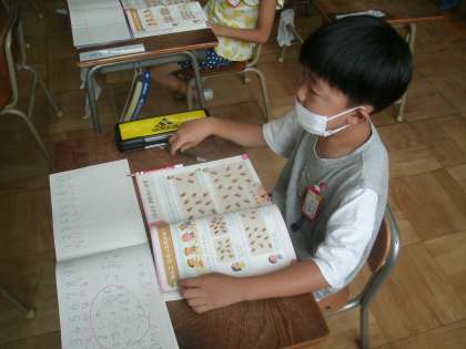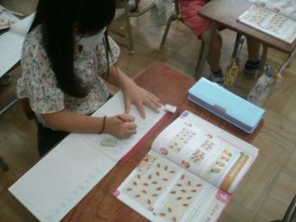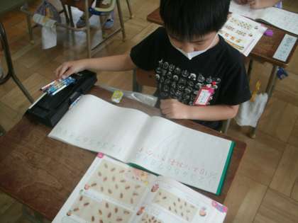 算数科学習の様子です。保護者の皆さんは時々、お子さんのノートを見てくださっていますか。みんなとても丁寧にきれいな字で書いていますよ。私のひらがなより上手に書く子どもがたくさんいます。誉めてあげてくださいね。