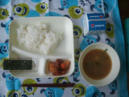(今日の献立) 酢豚 中華みそスープ 焼きのり ごはん 牛乳