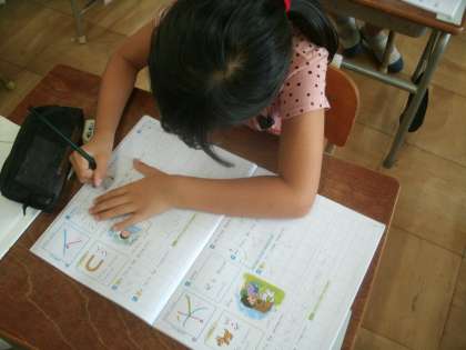 漢字学習に取り組んでいます。今日の漢字は「入」です。