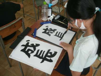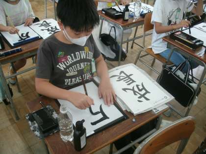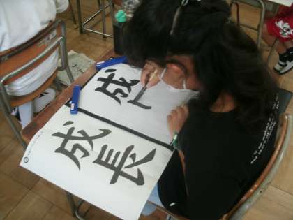 書写学習の様子です。今日は毛筆で「成長」と書きます。