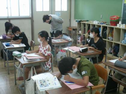 英語科学習の様子です。火曜日はマーク先生も学習に参加してくださいます。