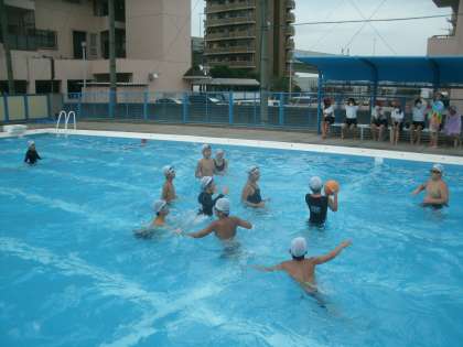 小学校生活最後のプール水泳学習の様子です。泳力調べをした後、リレーや水球で楽しみました。