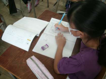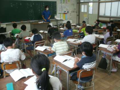 国語科学習の様子です。今日は「夕日がせなかをおしてくる」という阪田寛夫さんの詩を学習します。