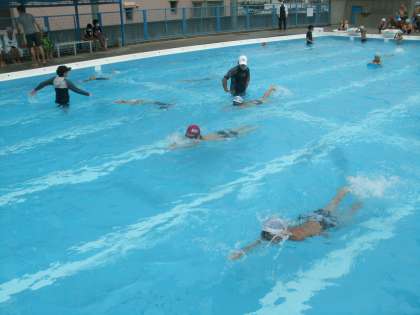 プール水泳学習の様子です。今日は3・4年生の「プール納め」でした。