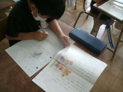 国語科学習の様子です。ワークシートを使って学習しています。
