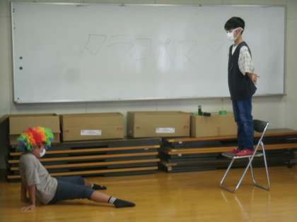 「金塚まつり」(17) 公開日 2021/09/09 更新日 2021/09/09 お知らせ 「金塚まつり」の様子です。6年生のアトラクション「劇場」の第2部は「金塚小学校の先生あるある」をしていました。 「校長先生あるある」ではわざわざ白い眼鏡まで作って登場してきました。子ども達は良く見ていますね。私が時々口にする「君、わりとおもろいなぁ。」という言葉を取り上げていました。木村先生や坂下先生、転任された並木先生まで登場してきて、けっこう笑わせてもらいました。 いいね(0)