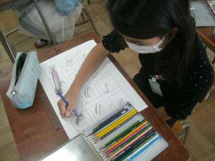 図画工作科学習の様子です。「形が動く 絵が動く」の学習に取り組んでいます。コマ送りすることで形や絵が動いているように見えます。昔、ノートの端にいたずら書きした「パラパラ漫画」によく似た感じですね。でも今回は1コマ、1コマ写真で取り込んでから、コマ送りするソフトで処理するそうです。すごいですね。