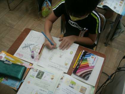 理科学習の様子です。今日は「いろいろなこん虫のからだのつくり」について学習しています。