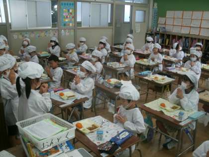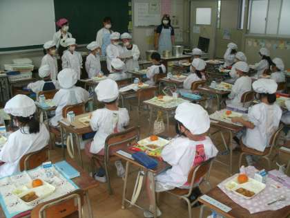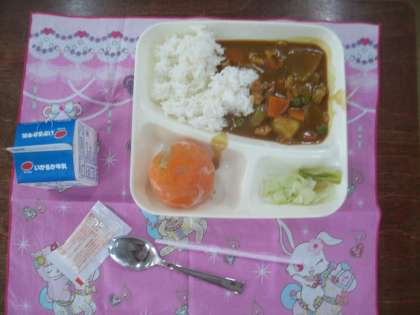 「今日の給食」 1年生 公開日 2021/09/21 更新日 2021/09/21 お知らせ (今日の献立) 米粉のチキンカレーライス キャベツとコーンのサラダ 冷凍ミカン ノンエッグドレッシング 前に出て、今日の献立を発表しているのは「きゅうしょく係」の子ども達です。 いいね(0)