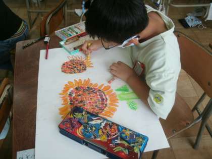 図画工作科学習の様子です。みんな、のびのび描いていますね。